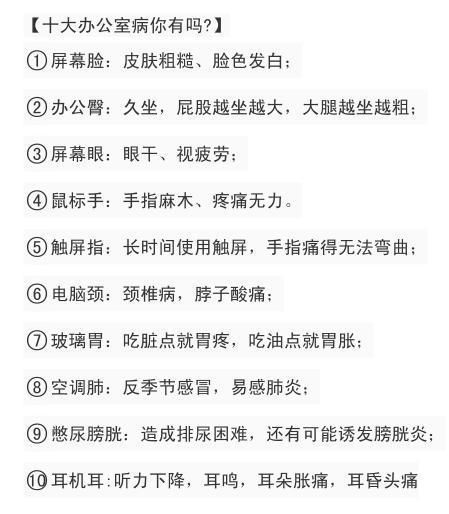 十大“办公室病”你中招了吗?
