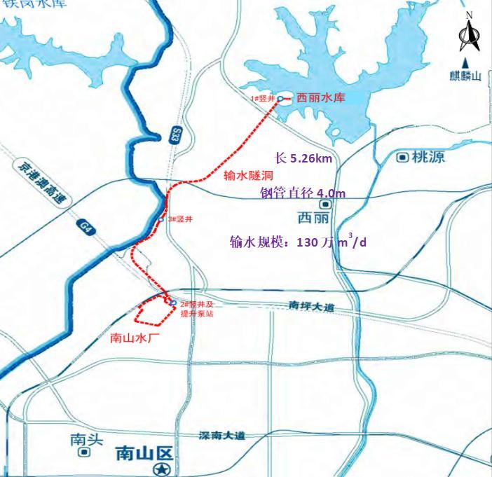 西丽水库至南山水厂原水管工程位于深圳市南山区,从西丽水库取水,采用隧洞方式输水至南山水厂,为南山水厂提供优质原水,主要供水范围为南山区及前海。