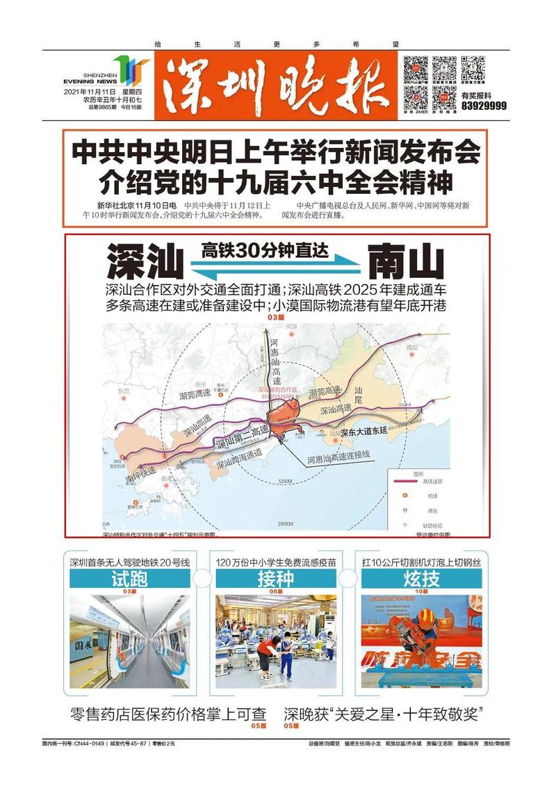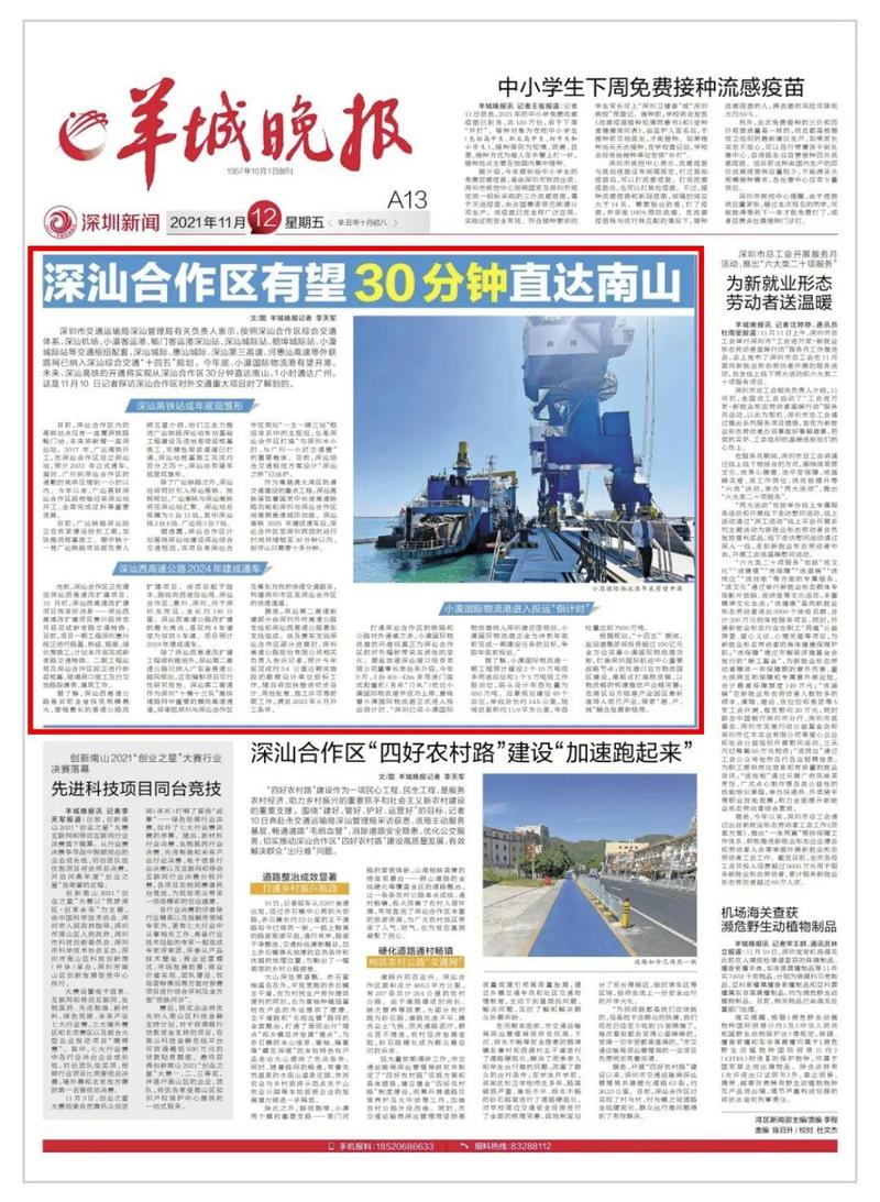 羊城晚报:11月12日深圳新闻头版(A13)头条
