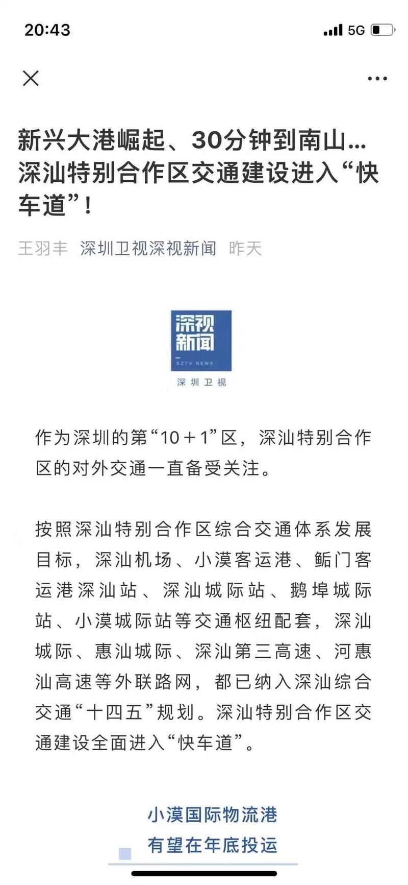 标题:《新兴大港崛起、30分钟到南山……深汕特别合作区交通建设进入“快车道”!》