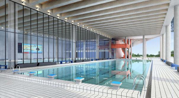 ▲游泳馆设有标准池、训练池和儿童戏水池