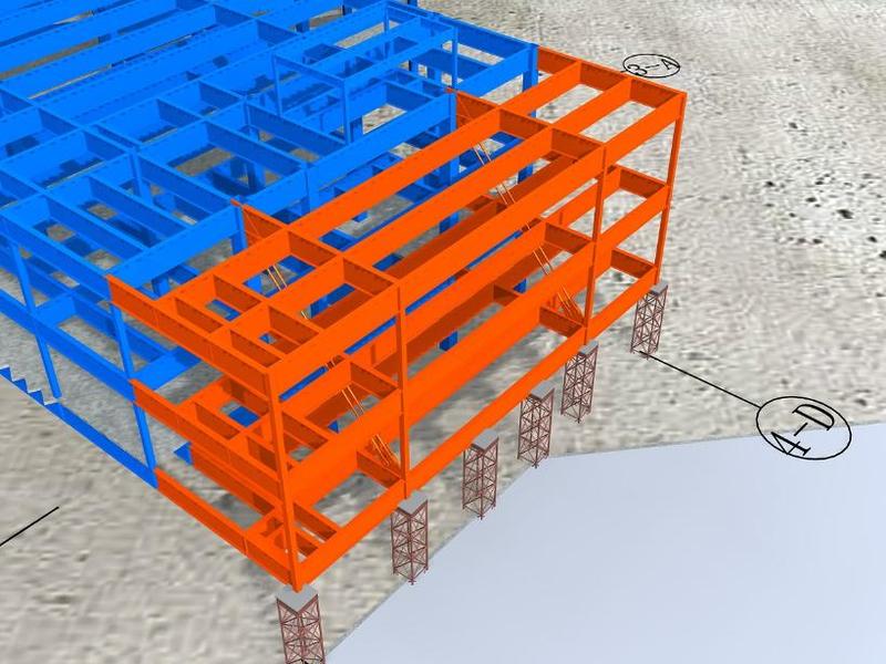 为做好悬挑安装,保证卸撑后结构不变形,市建筑工务署采用支撑架进行下部支撑后安装,针对本工程特点选用组合式格构支撑架,支撑架平面尺寸为1米×1米,标准节高度为1.5米,单个支架的承载力可达30t左右,可完全满足本工程施工条件下的受力要求。在大跨度区域项目采用整体提升的施工工艺,在保证施工质量的前提下,大幅度减少高空拼接带来的危害风险。