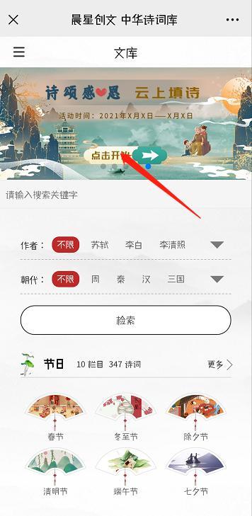 识别二维码,点击首页大图“诗颂感恩 云上填诗”活动界面,开启感恩的进程吧!