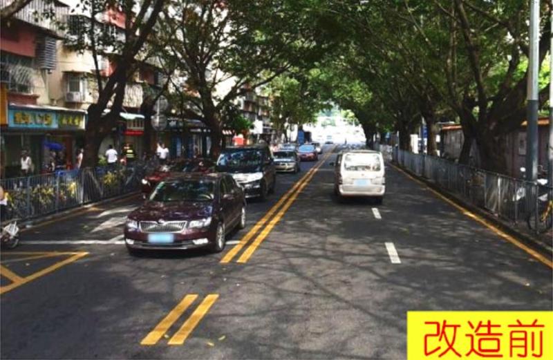 根据现行交通组织情况,增加斑马线前“阶梯状”停止线,可提高整体道路交通环境通行水平。