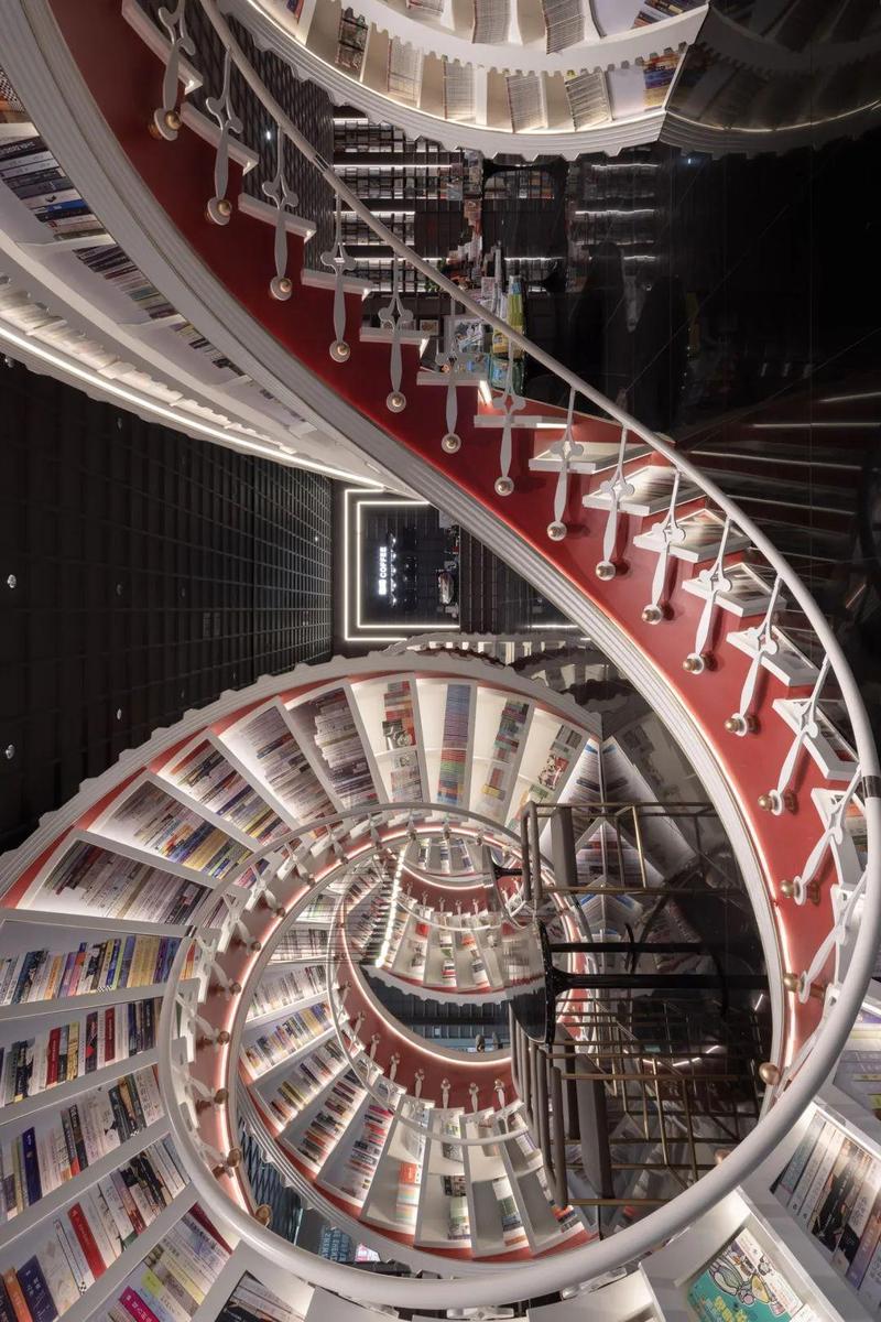 螺旋阶梯,既是承载功能陈列书籍的书架