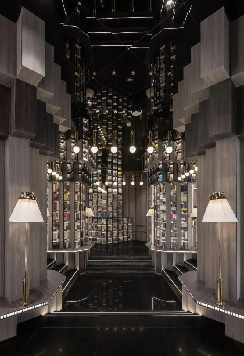 将论坛区典雅庄重的书架整合为绵延的阶梯