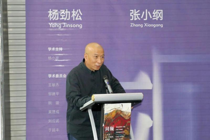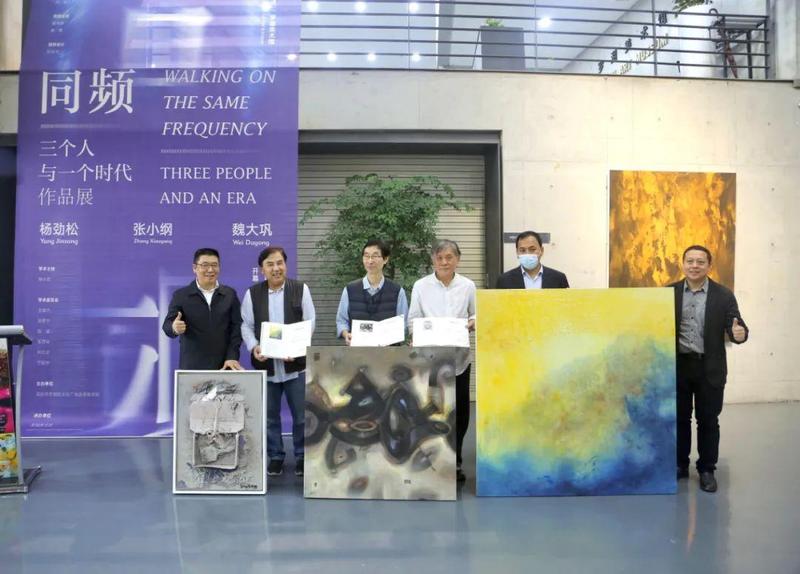 策展人刘冰介绍,本次展览筹备历时一年多,几经波折,最终以“同频”的主题将杨劲松、张小纲、魏大巩这三位艺术家与一个时代链接起来,并以抽象艺术作品展的形式呈现在观众眼前。本次展览的学术主持为中山大学传播与设计学院教授、博士生导师杨小彦;学术委员会成员有:王敏杰、邹建平、阮竣、黄建成、刘应武、于延丰,他们为展览建言献策,提供了重要的学术支撑和学术支持。
