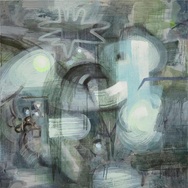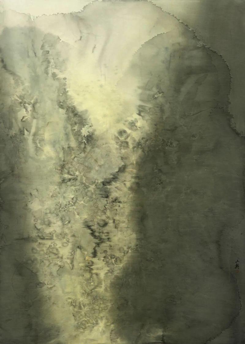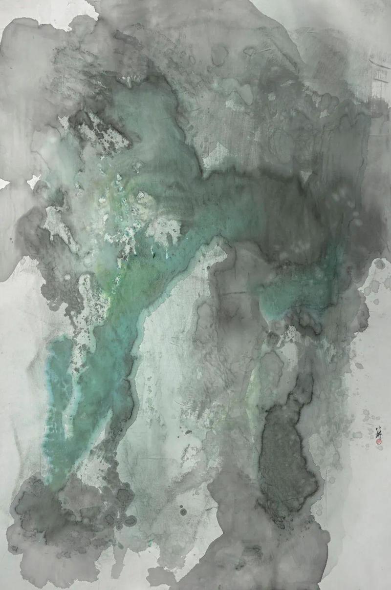 张小纲之所以对水性材料与效果着迷,我想这渊源于他基于生活之地而形成的远古灵感。中国传统中那种弥漫着无限空间意味的视觉世界,用一种不着一字尽得风流的偶然性,寻觅一处属于彼岸的“桃花源”,从而使内心热度化为眼前的潇洒。这说明,抽象的根由既是物质的,更是内心的。抽象尽管有其物化的形状,但这一形状的内核却是一种上升的精神。