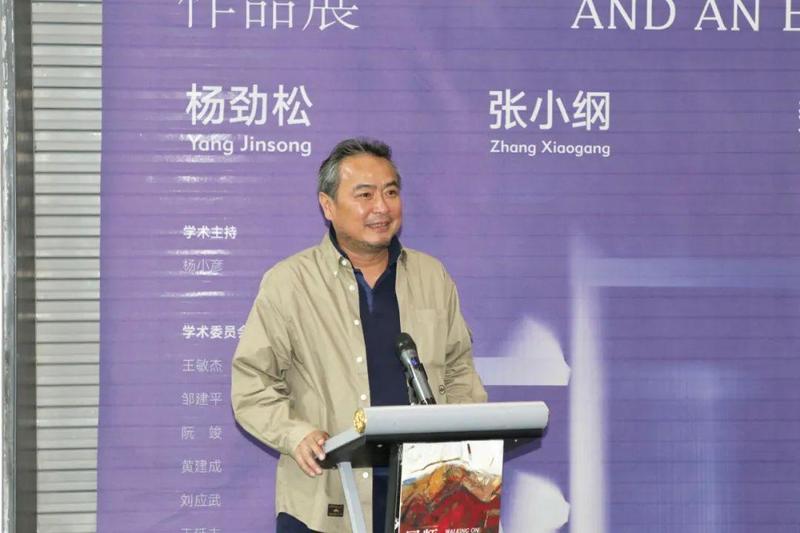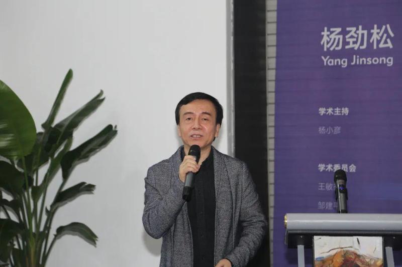 参展艺术家代表,中国美院教授、博士生导师,中国美协综合材料绘画与美术品保存修复艺委会副主任杨劲松致辞