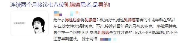 乳腺癌不是女性的专利,男性占乳腺癌患者的1%左右。