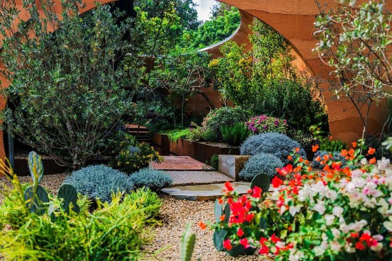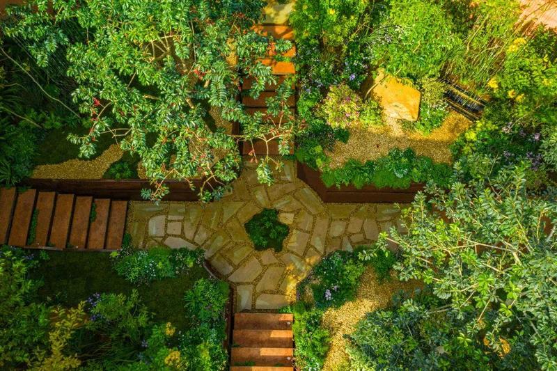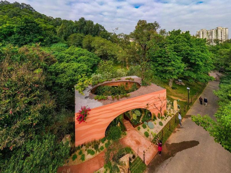 花园建设遵循环境保护优先原则,依托场地原有环境,采用绿色友好、生态友好的可持续、可循环利用建筑材料,在人工布景搭建的基础上,引入土壤、石块等天然元素,融合日常生活场景和原生态自然空间,打造开放式格局,呈现植物之间、人与自然之间的共生之美。