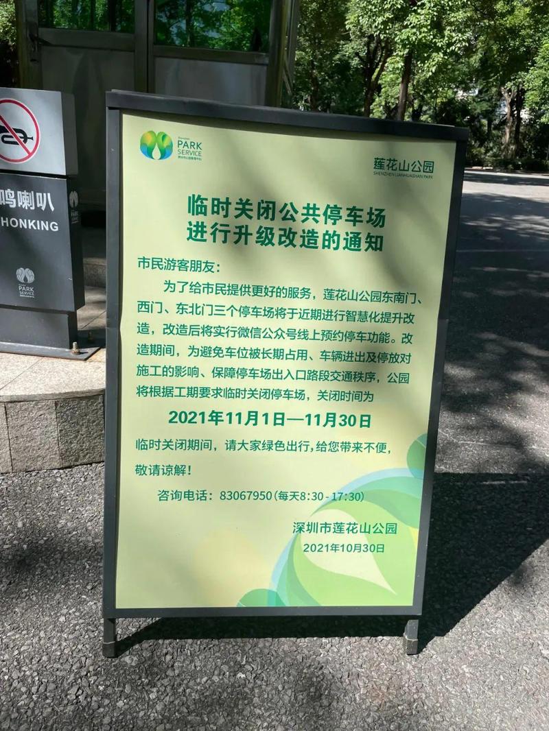 莲花山公园东南门、西门、东北门三个停车场于2021年11月1日至2021年11月30日进行智慧化提升改造,公园根据工期要求临时关闭停车场。