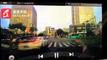 从旁边车辆的行车记录仪可以看到
