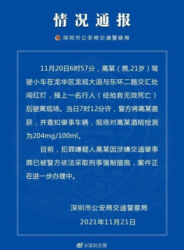 不减速闯红灯!深圳一轿车撞飞行人后逃离,行人不治身亡