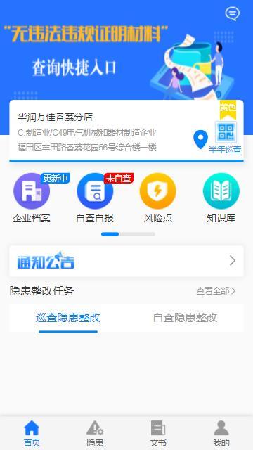 企业通过关注“深圳应急管理”公众号菜单栏进入“企业安全助手”,也可微信直接搜索“企业安全助手”小程序,输入用户名和密码即可登录。登录后点击主页中的“无违法违规证明材料”即可进入查询。