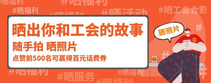 在活动小程序上传与工会相关的摄影作品,晒照点赞,点赞数排名进入前500,即可领取100元话费充值券。