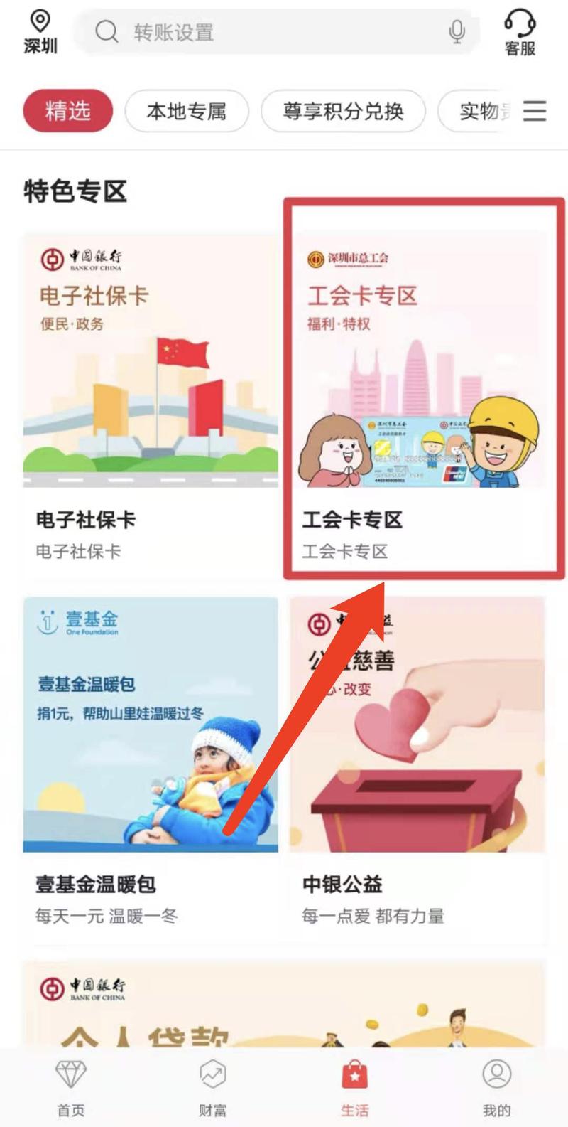 ② 持工会会员卡的会员可登录中国银行手机银行参加: