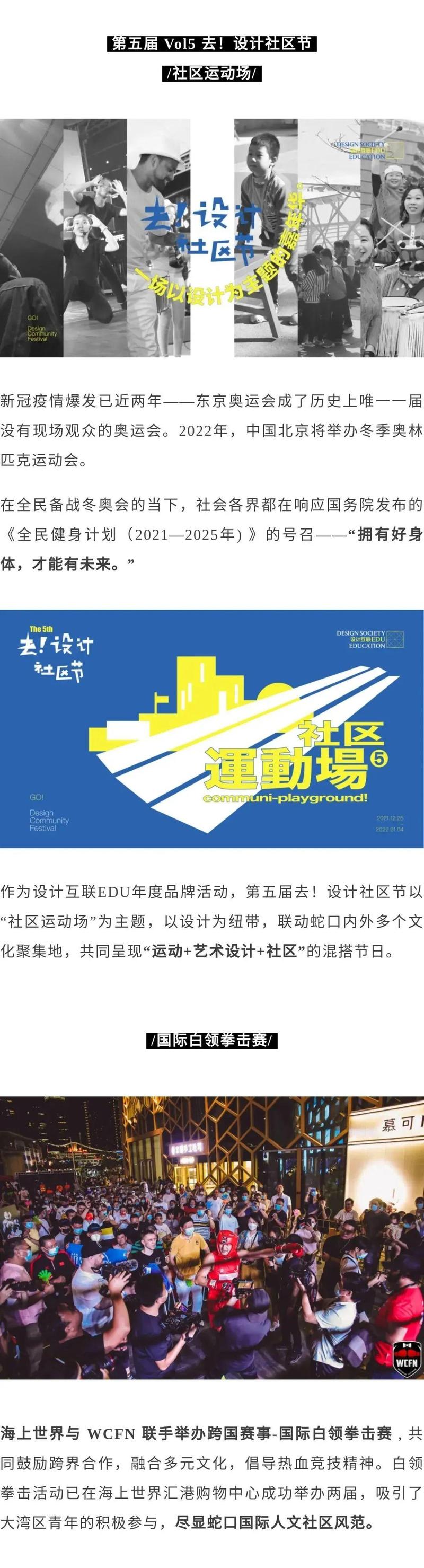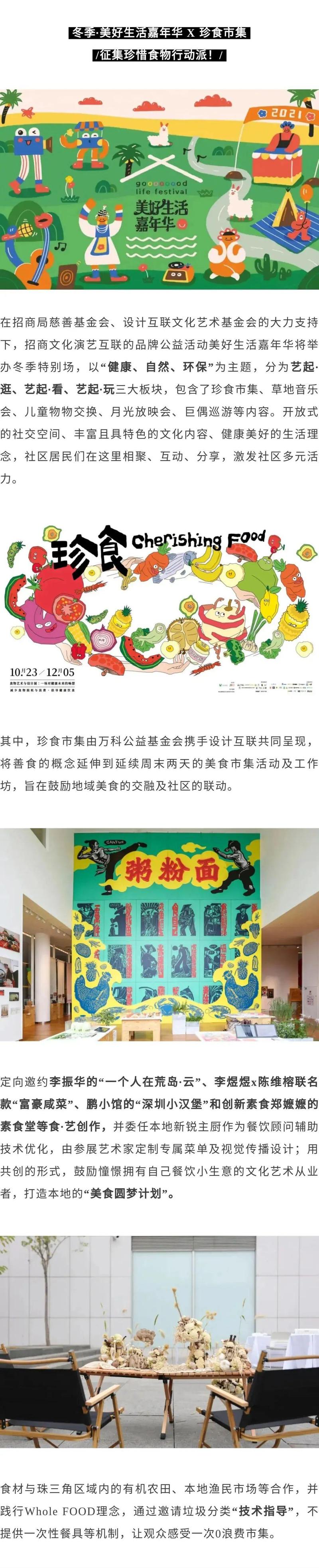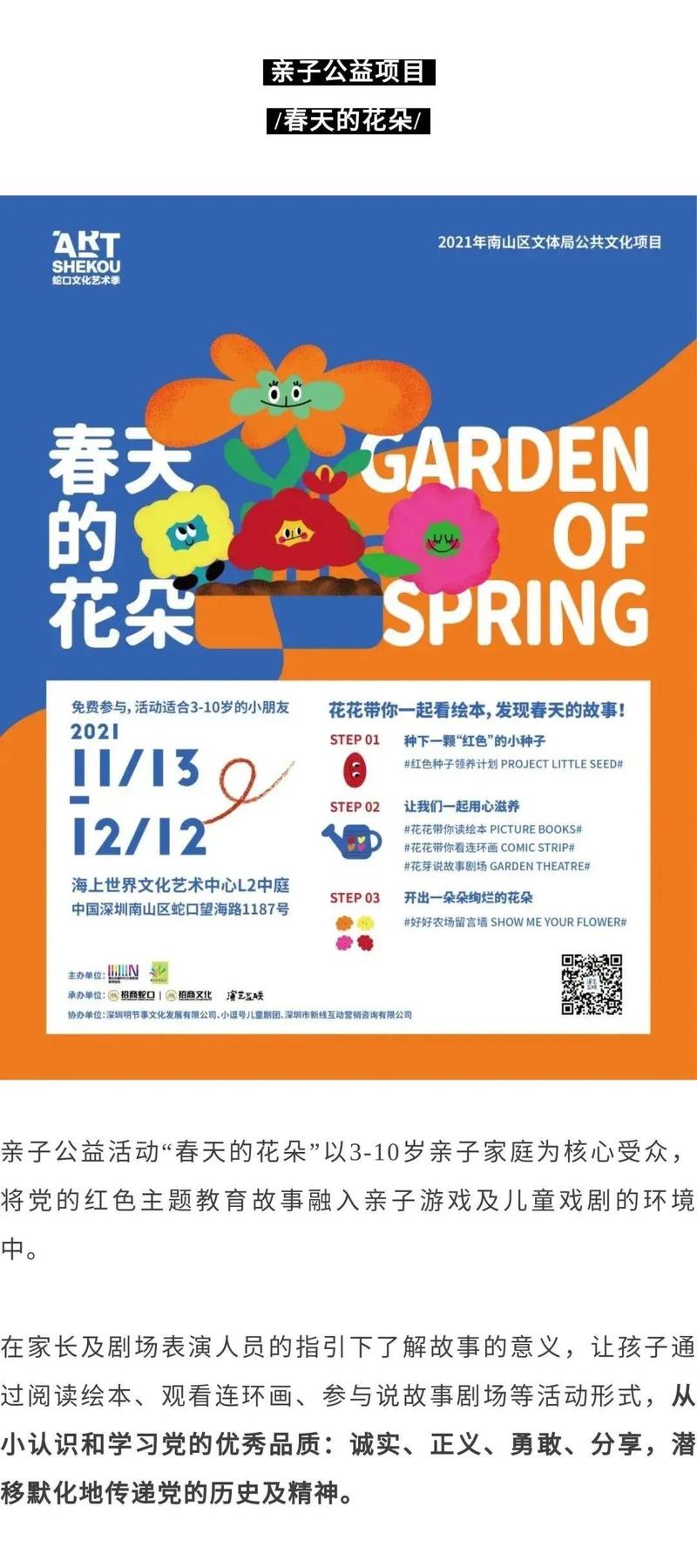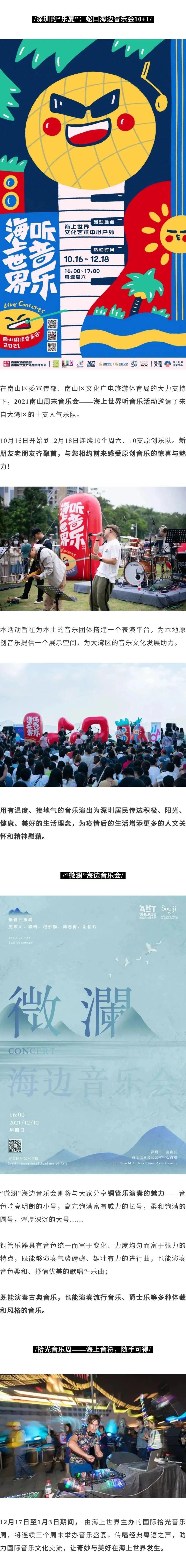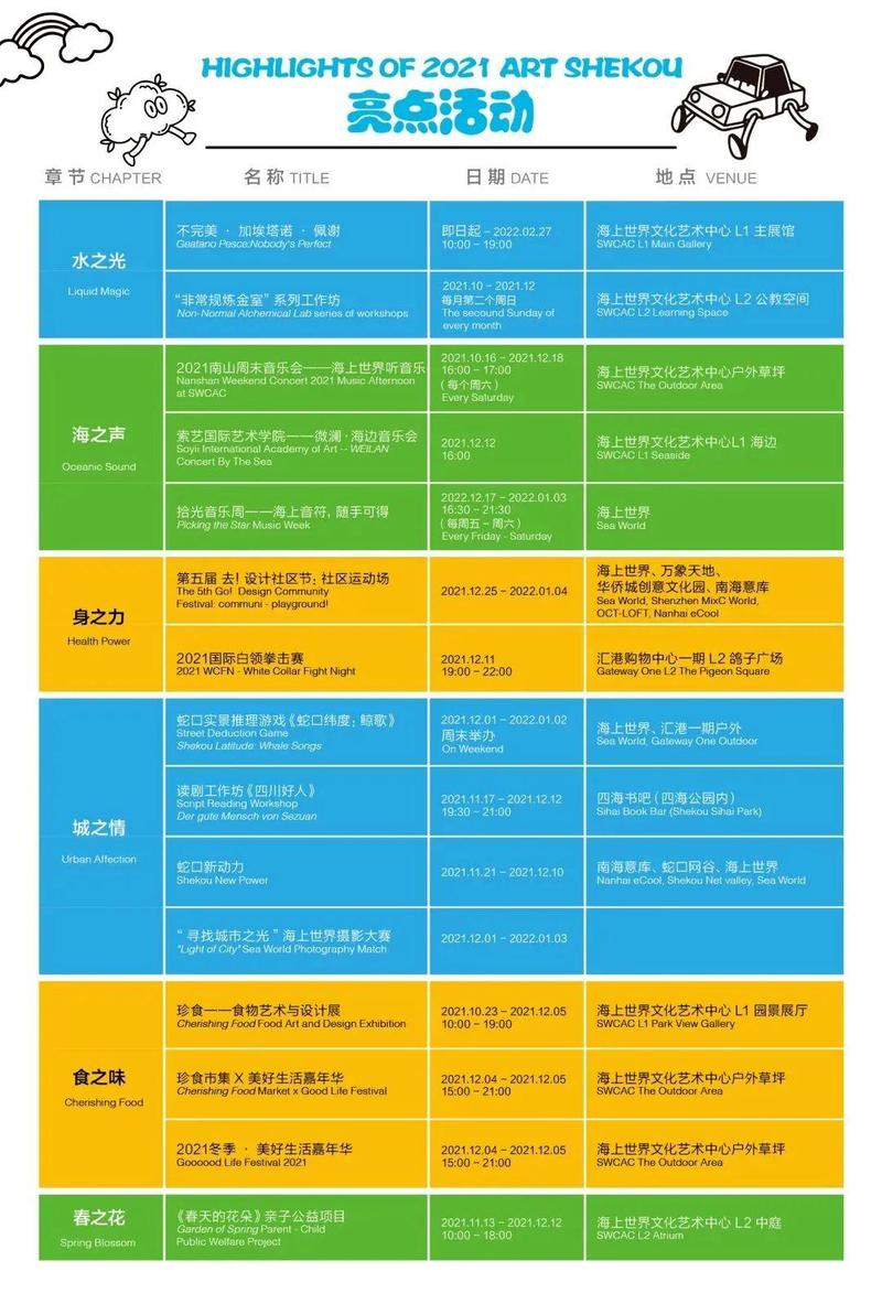 2021年11月20日至12月31日,由中共深圳市南山区委宣传部、深圳市南山区文化广电旅游体育局、招商街道办事处指导,招商蛇口出品,招商文化、海上世界、南海意库、蛇口网谷主办,海上世界文化艺术中心(SWCAC)承办,演艺互联、设计互联、设计互联EDU协办,招商局慈善基金会,设计互联文化艺术基金会支持的第二届蛇口文化艺术季以“山海之间·美好生活”为主题。
