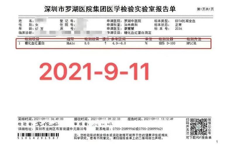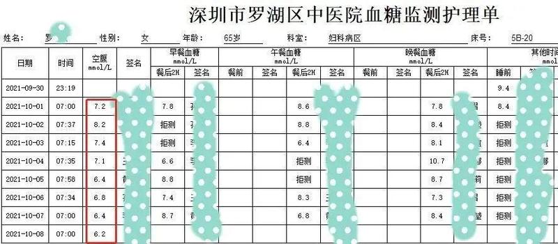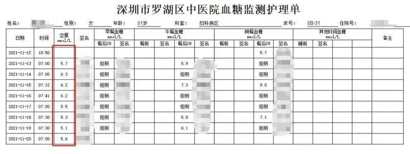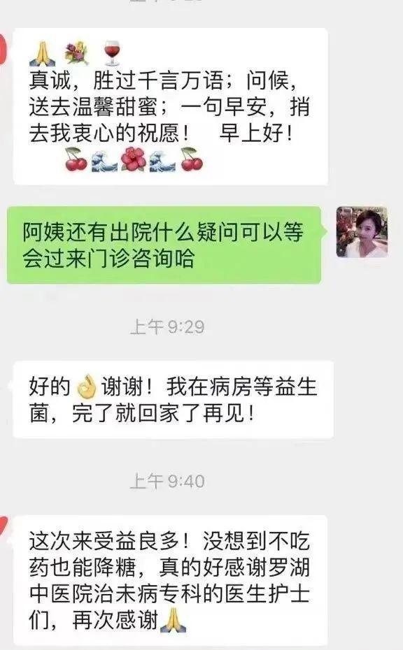 小伙伴患2型糖尿病12年余,长期口服格列美脲、二甲双胍降糖,血糖控制欠佳,空腹血糖波动在9.0mmol/L左右,听说罗湖中医院治未病科有不吃药就能控制血糖的体重管理营,还能减重,特意从江门过来参加第五期中医慢病体重管理营,住院期间停掉所有口服降糖药物,根据医生指导调整饮食,配合个体化中医治疗,7天空腹血糖控制在5.1-6.3mmol/L,体重下降3.5kg。