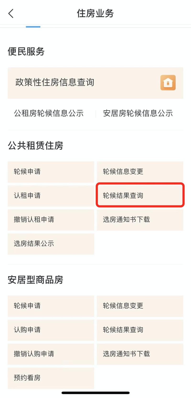点击“轮候结果查询”即可看到