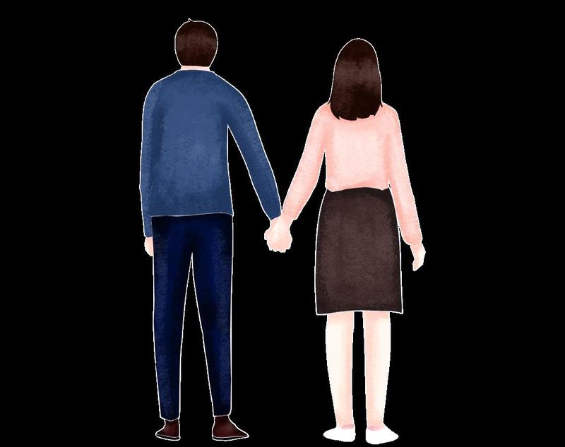他们手拉着手……
