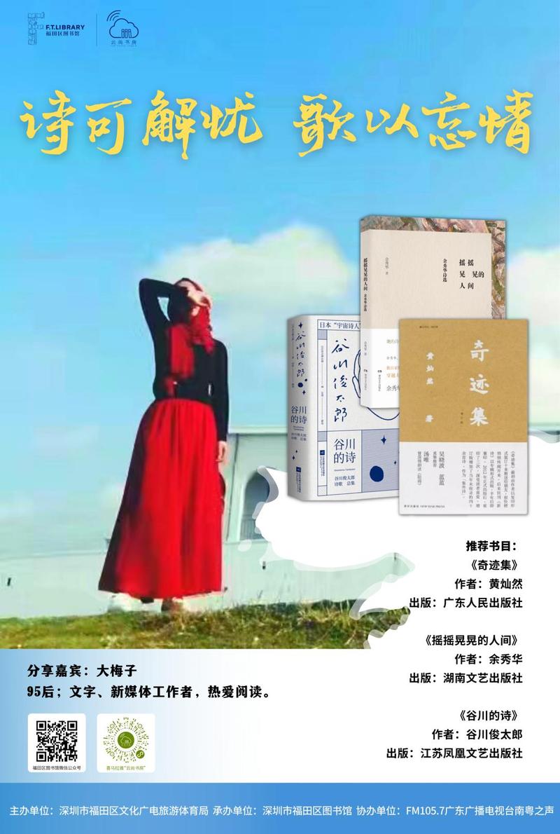 “湾区生活大师”的听众,大家好。我是大梅子,是一名普通听众,非常荣幸能有机会参与“云尚书房”跟大家分享几本诗集。