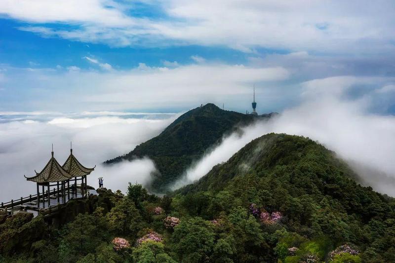万花屏:这里是观赏毛棉杜鹃的绝佳平台,可看到盛开的鲜花犹如一面花墙,点缀在山坡上。