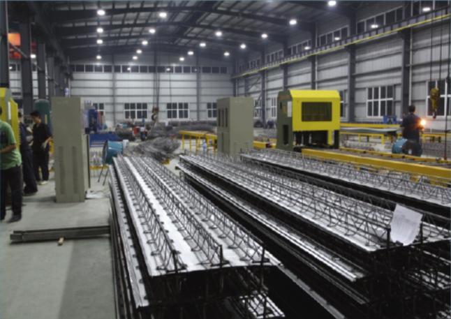 装配式楼板有预制叠合板、钢筋桁架楼承板、压型钢板组合楼板、双T板、SP板等。装配式的楼板选择需考虑楼板结构刚度、自重、装配化率、安装难易程度、施工工期及防火防腐性能。本项目采用钢筋桁架楼承板,产业化水平高,施工速度快,底部较平整。钢筋桁架楼承板是将楼板中的钢筋设计成三角形的钢筋桁架,并在工厂加工成型,再将钢筋桁架与底模板焊接成一体的半成品组合模板,在施工现场,将钢筋桁架模板直接铺设在铝模支撑上,然后进行简单的面筋安装,形成了自承式的钢筋桁架模板体系,最后可直接浇筑结构混凝土形呈自承式楼板体系。施工阶段,钢筋桁架模板能够承受混凝土自重及施工荷载,使用阶段,钢筋桁架与混凝土协同工作,承受使用荷载。该技术部分实现工厂化生产,简省了传统支架现浇的地基处理、支架搭设和模板拆除三道工序,简化了施工程序,提高了楼板施工效率。