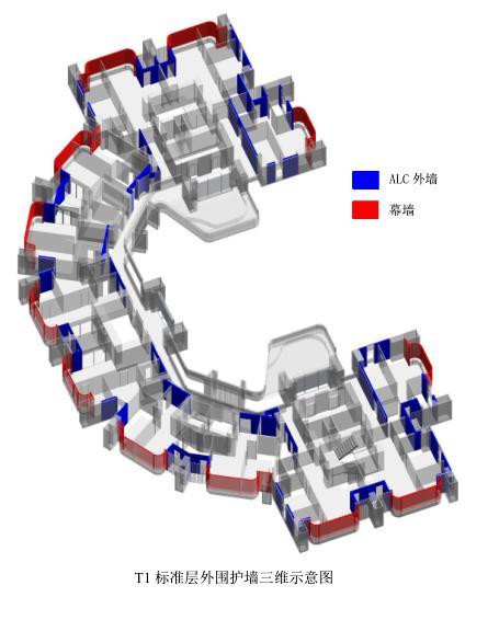 立面设计融合了公寓功能,外观上与周边和而不同,技术上通过模块化设计,组合成三层为一组的独特造型。结合项目结构体系变形能力高的要求及外立面设计的特色,外围护体系采用幕墙体系,实现工厂预制,现场拼装。幕墙体系主要包含单元式幕墙及铝板幕墙+ALC墙板。