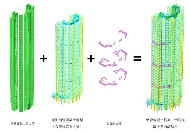 本项目采用钢管混凝土柱+钢梁框架+钢管混凝土剪力墙结构体系,预制构件包括钢梁、钢管混凝土柱、钢板剪力墙及钢筋桁架楼承板、实现免模施工。