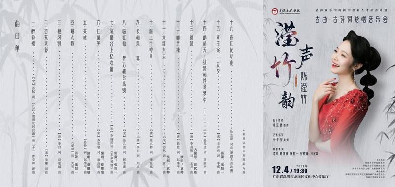 演出预告 | 12月4日,滢声竹韵-陈滢竹古曲·古诗词独唱音乐会龙岗开唱~