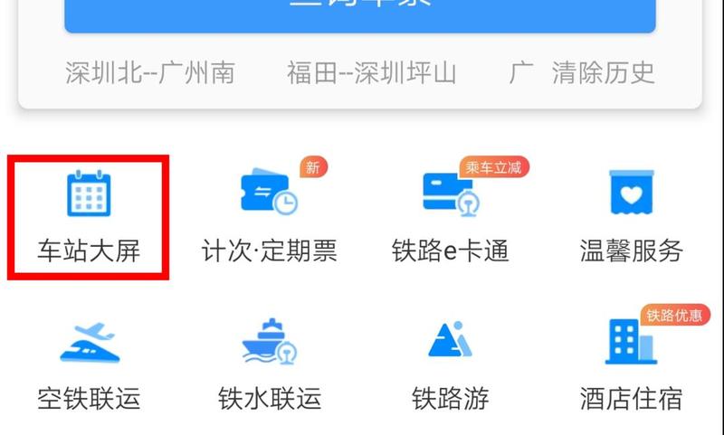1. 打开12306APP,首页找到车站大屏标识