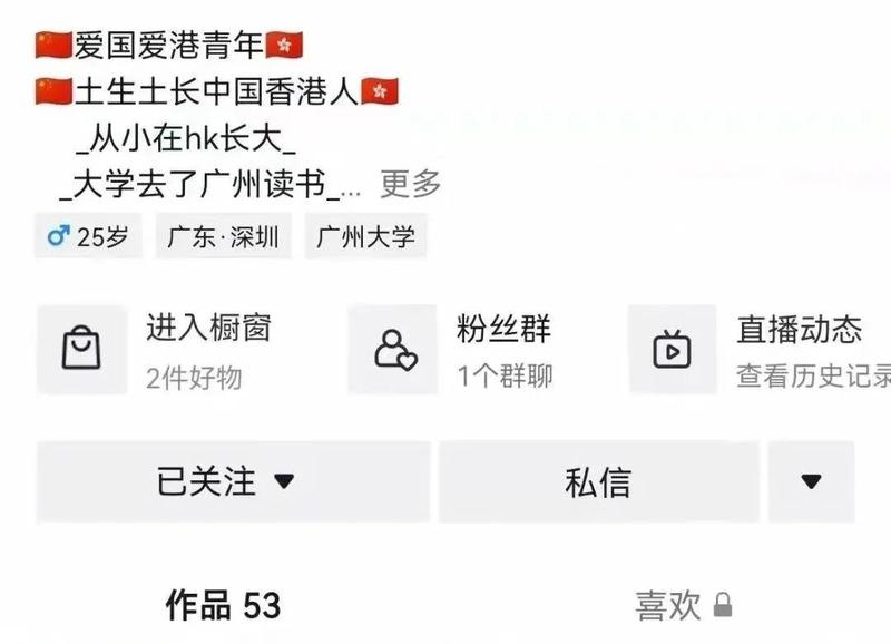 在欧阳国龙的短视频里,常常将粤语和普通话混合着解说。这也形成了他独特的风格。他更是将中国国旗和香港特区区旗放在他的视频主页上,就是想要告诉所有内地的朋友,他是一个真正爱国的香港人,并且要传递一个信息,香港爱国的年轻人不是很少,是很多。
