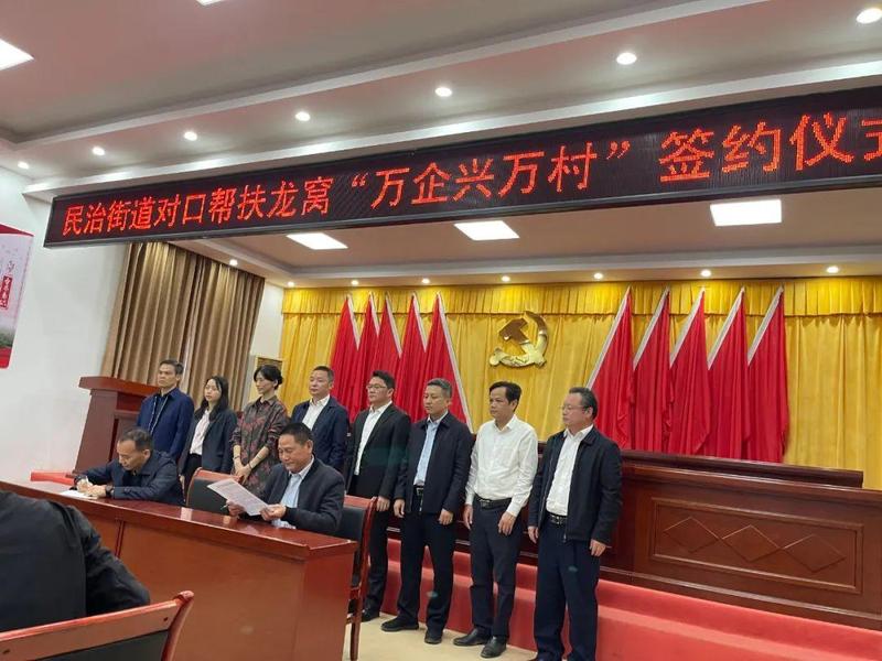 民治街道对口帮扶龙窝镇工作座谈会上,听取了关于民治街道驻镇帮村工作队7月22日进驻以来的帮扶工作情况汇报以及龙窝镇经济社会发展情况介绍,接着举办了“万企兴万村”签约仪式,民治股份公司、安宏基实业等6家企业与宝洞、嶂下等6个村正式结对,街道现场捐赠财政资金100万元、民治街道工商联(商会)捐赠30万元、佰亨置业捐赠20万元。座谈会上,紫金县政府党组成员、副县长、龙窝镇党委书记郑远程回顾了过去五年龙窝脱贫攻坚的显著成果,描绘了未来龙窝发展茶叶种植特色产业带、全域发展旅游业、加大农旅融合茶旅融合、深化基层社会治理等5个方面的发展蓝图,希望民治大力支持,助力龙窝巩固乡村脱贫攻坚成果,更好更快实现乡村振兴。紫金县委常委、副县长、深圳对口帮扶紫金工作组组长、龙华区对口帮扶紫金指挥部总指挥对民治街道讲政治、顾大局、高度重视对口帮扶乡村振兴工作给予高度肯定,介绍了当前对口帮扶乡村振兴工作与以往扶贫攻坚工作在工作内容、工作领域、人员构成等方面的差异,详细介绍了未来三年龙华区对口帮扶紫金指挥部的“1+4”工作规划及龙窝的定位,勉励“民治天团”发挥“友军”“帮镇扶村”作用,助力龙窝更好更快发展将蓝图早日实现。