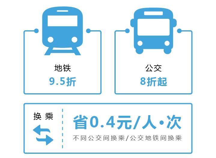 ✦ 换乘:在刷卡后90分钟内,在不同的公交线路间换乘、在公交线路与地铁间换乘,在刷卡优惠的基础上,给予0.4元/人次的换乘优惠。