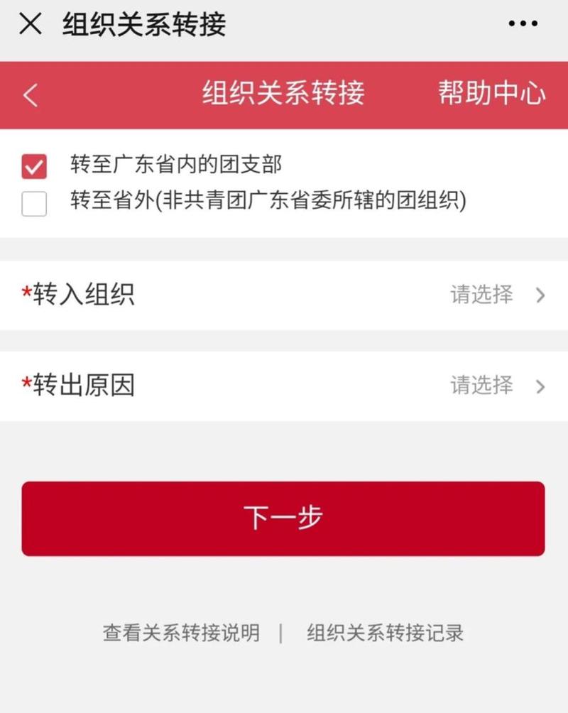 申请转至“非共青团广东省委所辖的团组织”,并准确填写团员去向;其余转接手续按照线下组织关系转接流程处理。