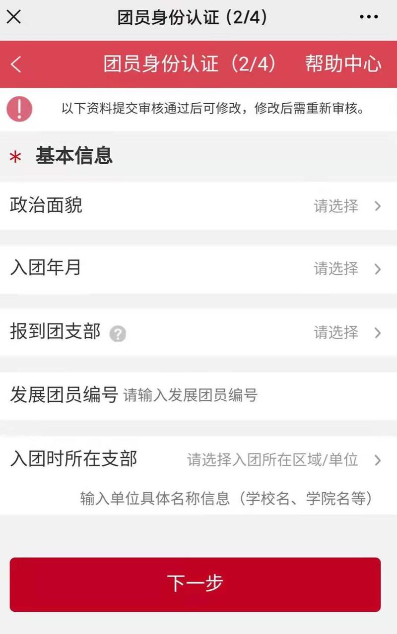 (2)根据系统流程据实填写个人信息,点击“提交”,等待转入团组织审核。