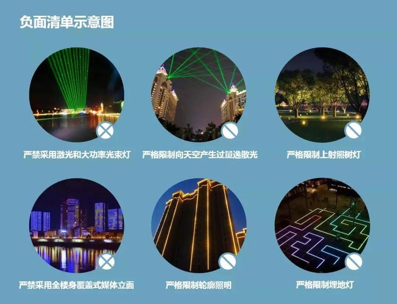 一是整体调降照明亮度,景观照明亮度限值较《城市夜景照明设计规范》低20%,泛光照明平均亮度最大值由25cd/㎡降至20cd/㎡。景观照明的照明功率密度值也降低20%。