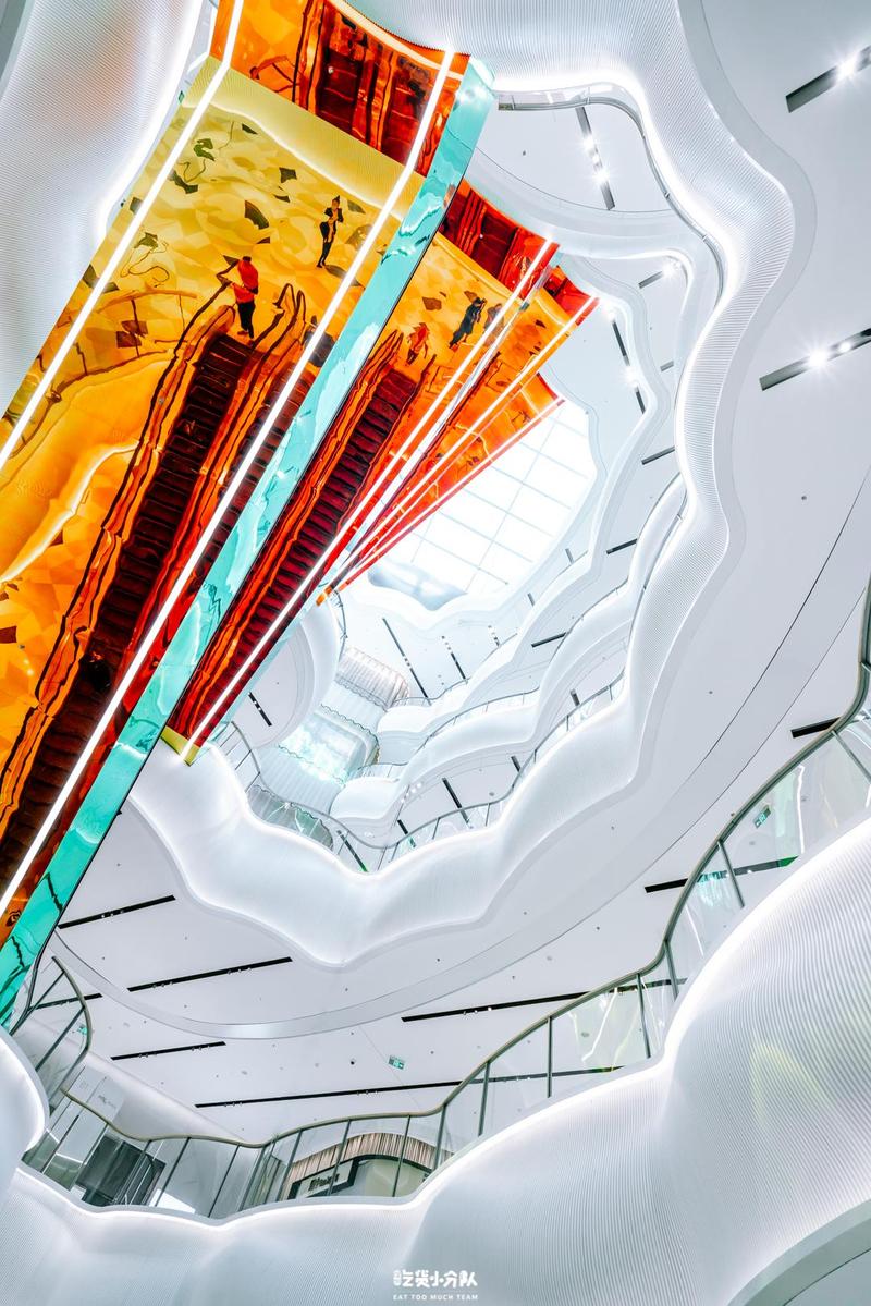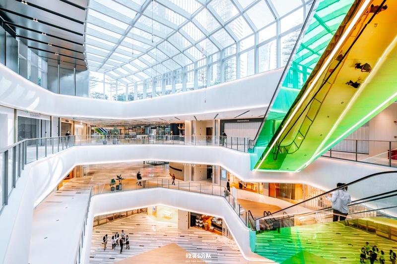 深圳万象前海,2021年12月3日上午11点,正式开业。10万㎡的大体量建筑面积,檐口细节处呈现着不同的设计,交织于镭射风格的扶梯中,将生活美学贯穿于目之所及的地方。