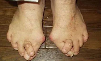 最多最常见的病便是“大脚骨”,即拇指外翻,穿高跟鞋时,脚的受力集中在前脚掌,而且高跟鞋前脚掌部分一般比较紧,脚趾不仅无法舒展,还会受到挤压,脚趾上的神经也会受到压迫,引起大脚趾外翻,小脚趾变形,骨质增生等问题。鞋跟越高,坡度越大,身体重心前移,硬将大致为方形饱满的前足挤进锥形窄小的鞋尖内,前足底负重增大,压力集中在脚趾,加上窄而尖的鞋尖限制脚趾的活动,使双足备受折磨,容易诱发拇外翻。