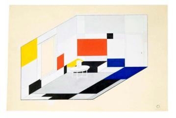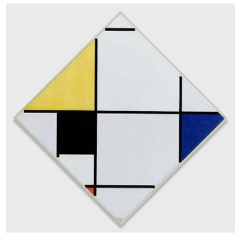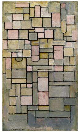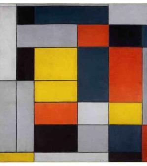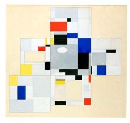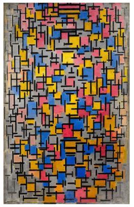 皮特·科内利斯·蒙德里安生于荷兰,在17岁之前,他曾得到写实浪漫主义的真传。1911年蒙德里安见识了毕加索和布拉克等立体派的作品,随后前往巴黎研究立体派的绘画风格。他不断分析眼睛所见的影像,并且加入了音乐性使作品充满了节奏感,同时利用抽象的造型与中性的色彩来传达秩序与和平的理念。