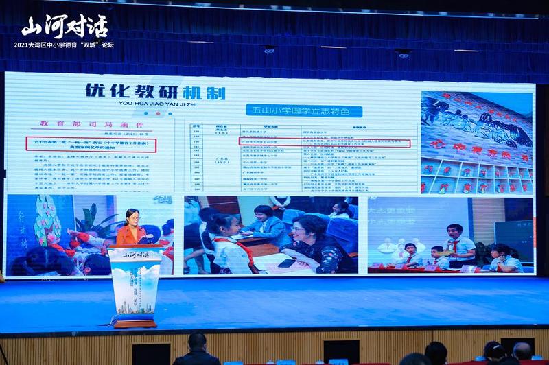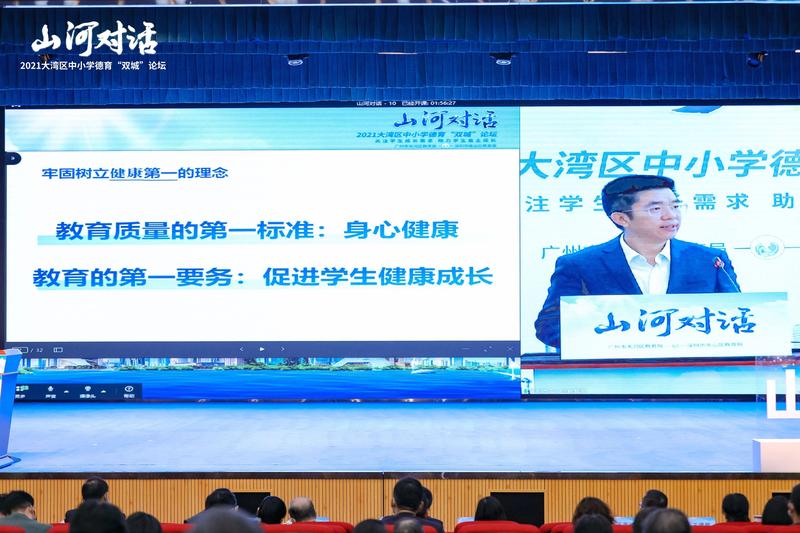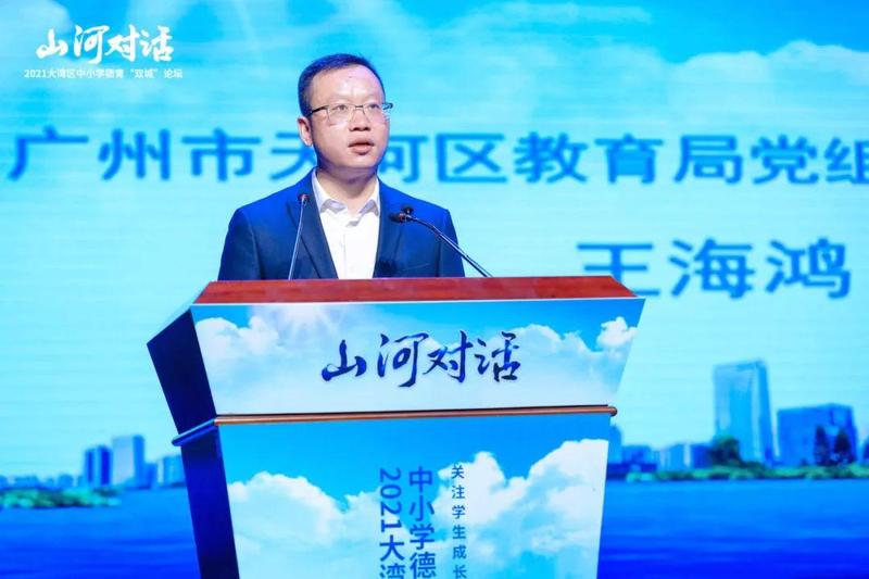 为深入推进粤港澳大湾区建设,拓宽德育交流平台,提升德育工作格局,12月6日,粤港澳大湾区两大教育强区广州市天河区、深圳市南山区再度聚首,共同举办“山河对话”——2021大湾区中小学德育工作论坛。此次论坛以“关注学生成长需求,助力学生自主成长”为主题,论教育生态新创建,谋区域教育新发展。