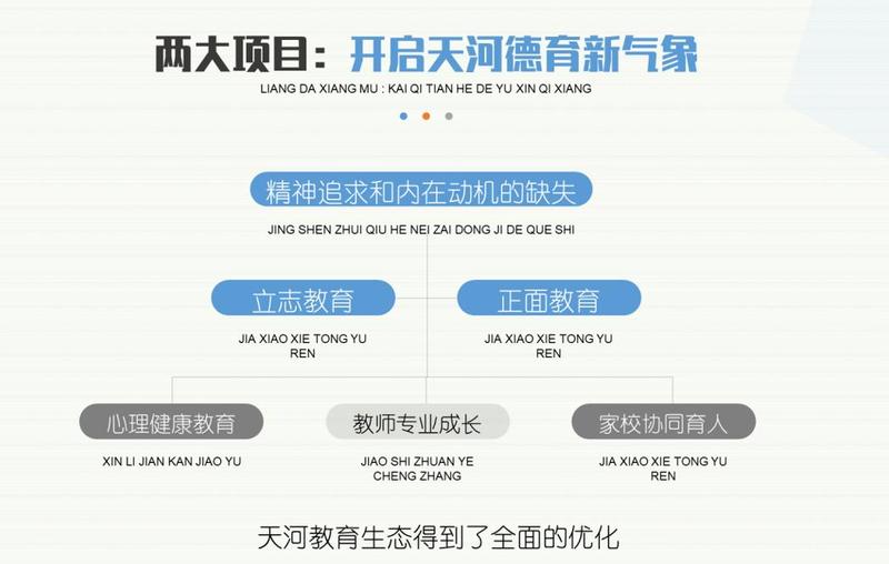 天河以问题为导向,紧扣当前中小学生存在的精神追求和内在动机缺失这两大问题,整体推进“立志教育”和“正面教育”,通过这两大项目把心理健康教育、教师专业成长、家校协同育人等有机整合起来,使天河教育生态得到了全面的优化。