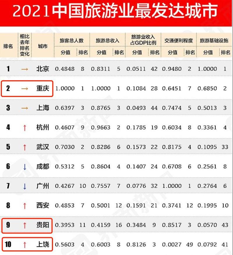 新浪微博#被影视剧带火的网红打卡地#话题下不少用户主动提名心动城市,官方账号CCTV也下场指出富有地域特色的影视剧能够展现出不同的风土人情和历史底蕴;而在界面新闻发布的中国旅游城市榜单中,除了老牌城市北上广之外,重庆、上饶、贵阳等非传统名城也展现了不俗的潜力,在榜单前十中占有一席之地。