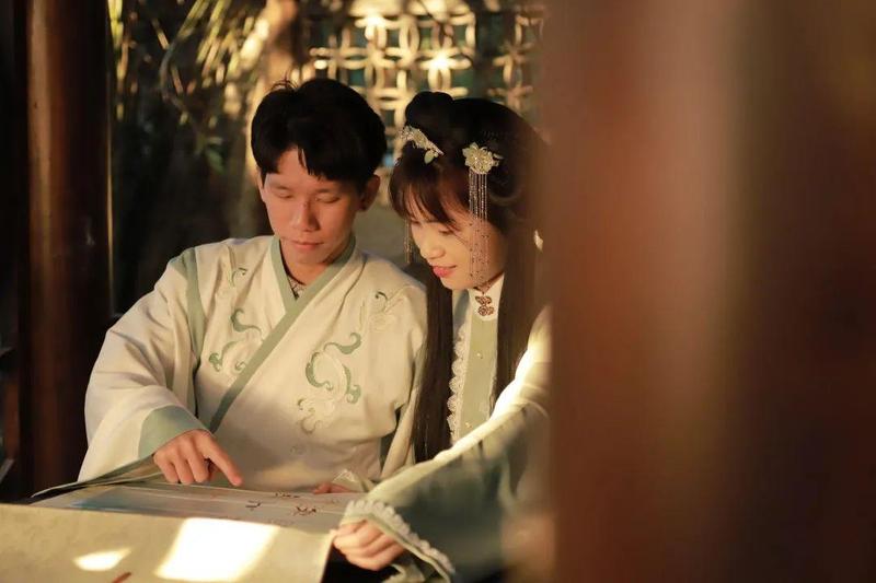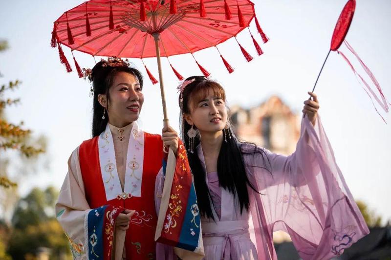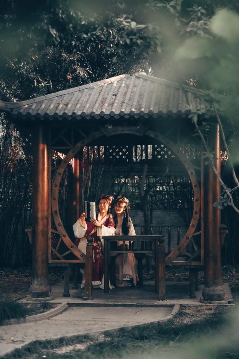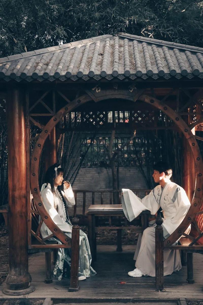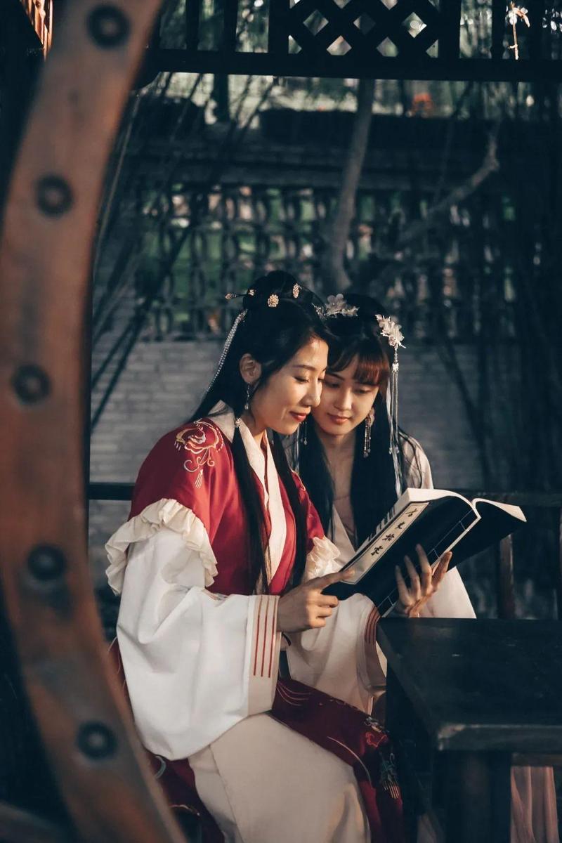 着汉服吟诗作对,衣袂当风,裙带轻飘