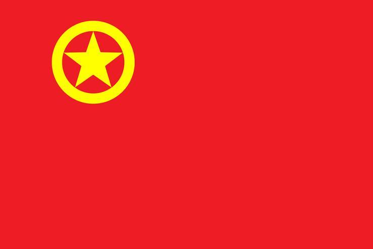 中国共产主义青年团团旗旗面为红色,象征革命胜利;左上角缀黄色五角星,周围环绕黄色圆圈,象征中国青年一代紧密团结在中国共产党周围。