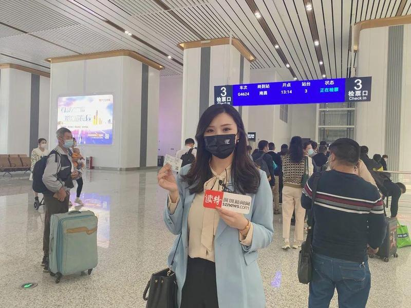 #来自江西吉安的杨女士,趁着周末时间从江西吉安万安县乘坐赣深高铁来到光明和朋友相聚。她说,赣深高铁开通之前,觉得深圳距离江西很遥远,来深圳要做足充分的心理准备,过去只能坐大巴车或者坐火车来深圳,路上需要花费将近10个小时,现在高铁开通了,3个小时不到就到了,还能赶趟和朋友吃晚饭。