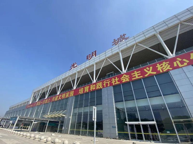 在光明城站进站口