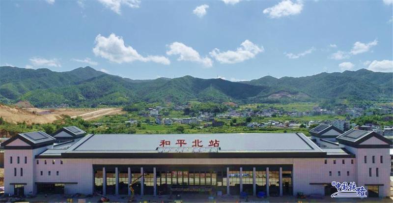 和平北站是赣深高铁南下入粤第一站,位于广东省河源市和平县阳明镇均联村,站房建筑面积9965㎡,以“入粤古郡,客韵新生”为设计理念,站房规模为2台4线。