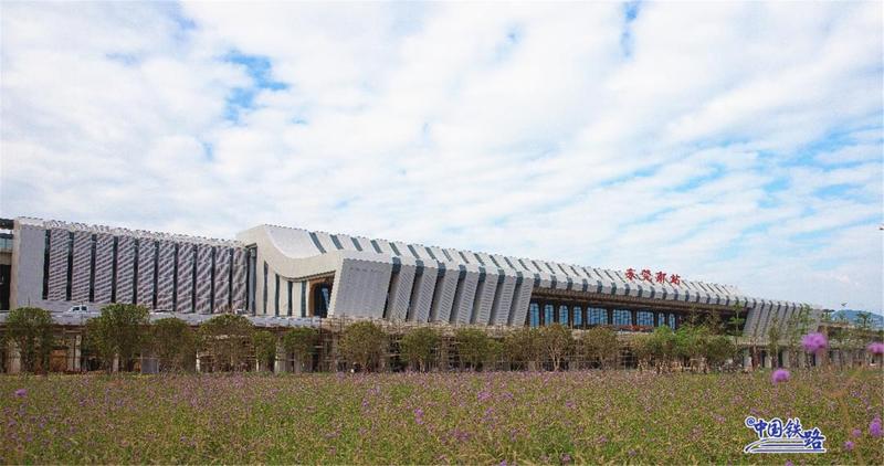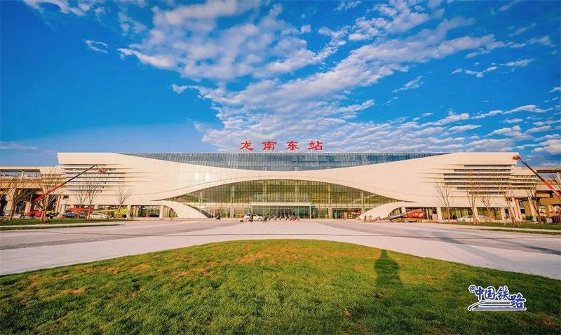 龙南东站位于赣州市龙南县东侧的里仁镇,建筑面积1万平方米,车站规模为2台4线。该站以“双龙聚首、赣南门户”为设计理念,从龙南围屋中汲取灵感,赋予站房现代建筑语汇,诠释出龙南东站的客家新韵。